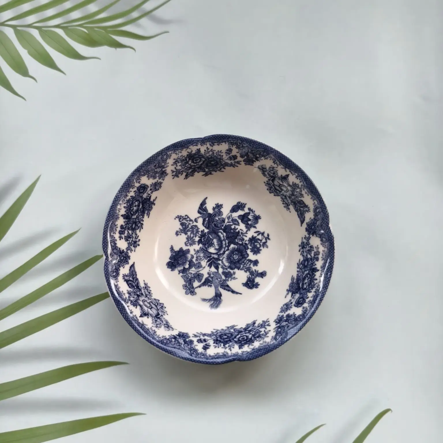 British original single European retro underglaze ceramic blue style steak plate soup bowl salad bowl